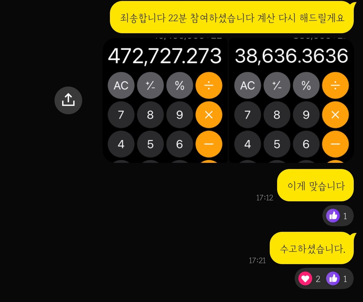 한판을 했든 열판을 했든 팸원들이 서로 양보 해줘서 우린 공동분배 했는데 왜요?