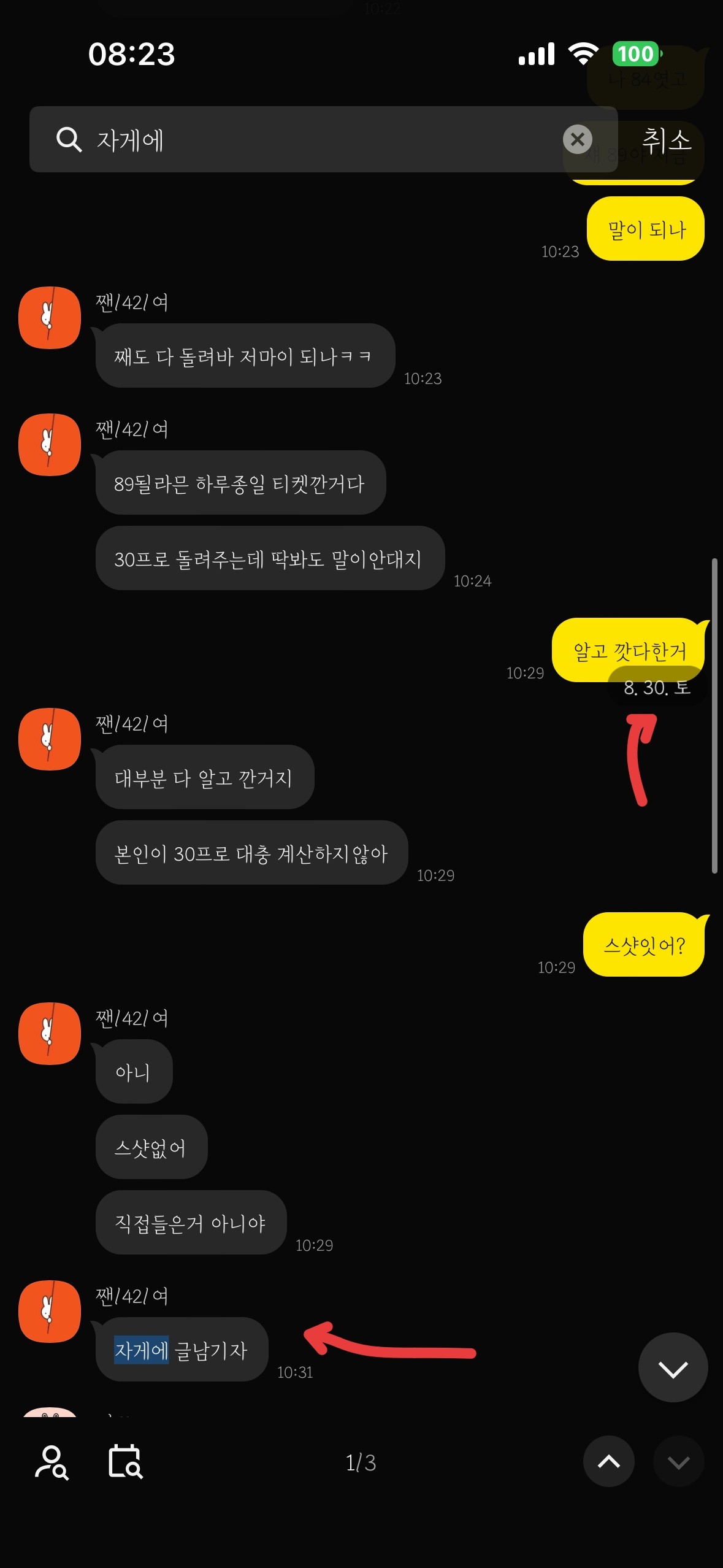 대화하기 싫다 거려; 니가 한짓이 잇으니까 피하는거 아니고?