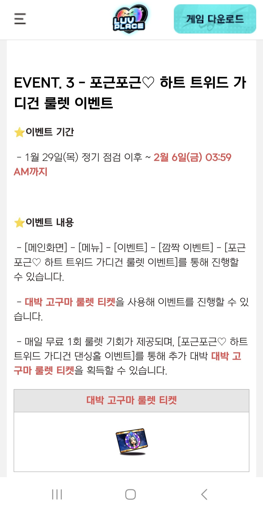 룰렛 이벤트 날짜 이게 맞나요? 혼인 - 하이틴메이저스티