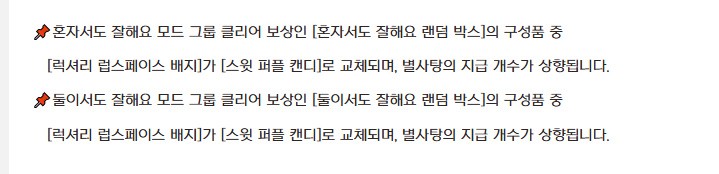 그리고 지금 보유하고 계신 상자의 구성물 변경 사항은 없습니다.
