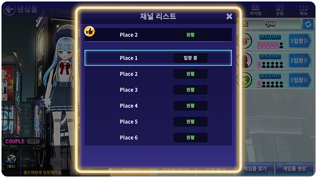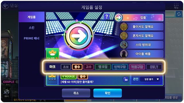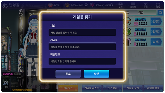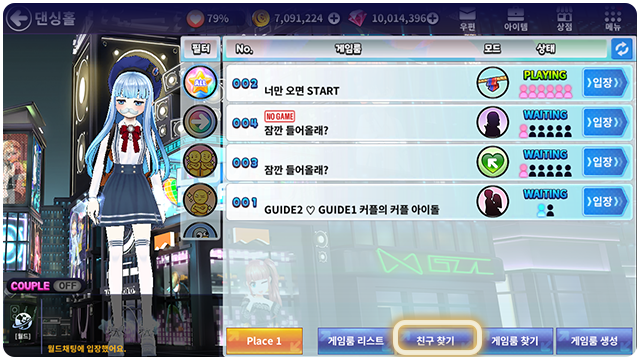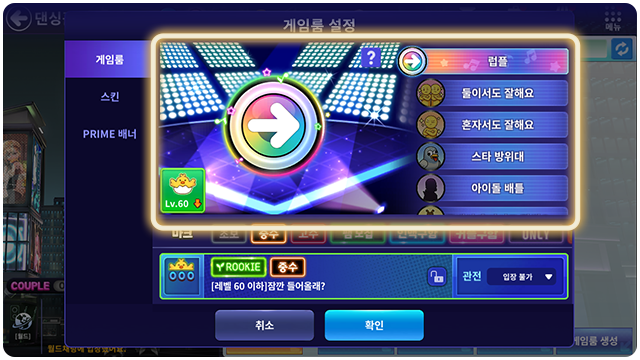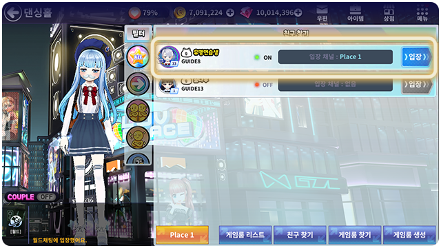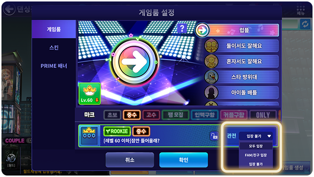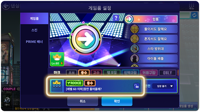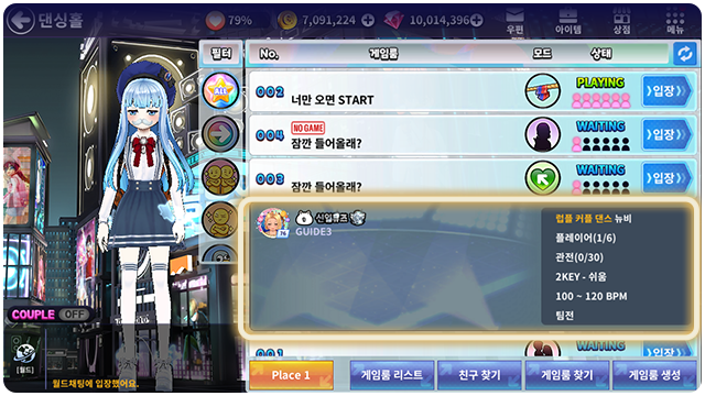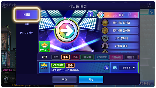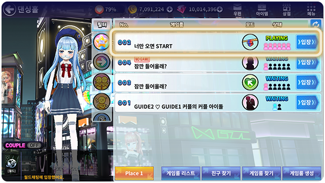■ 댄싱홀 로비에서 게임룸 리스트를 확인할 수 있어요.