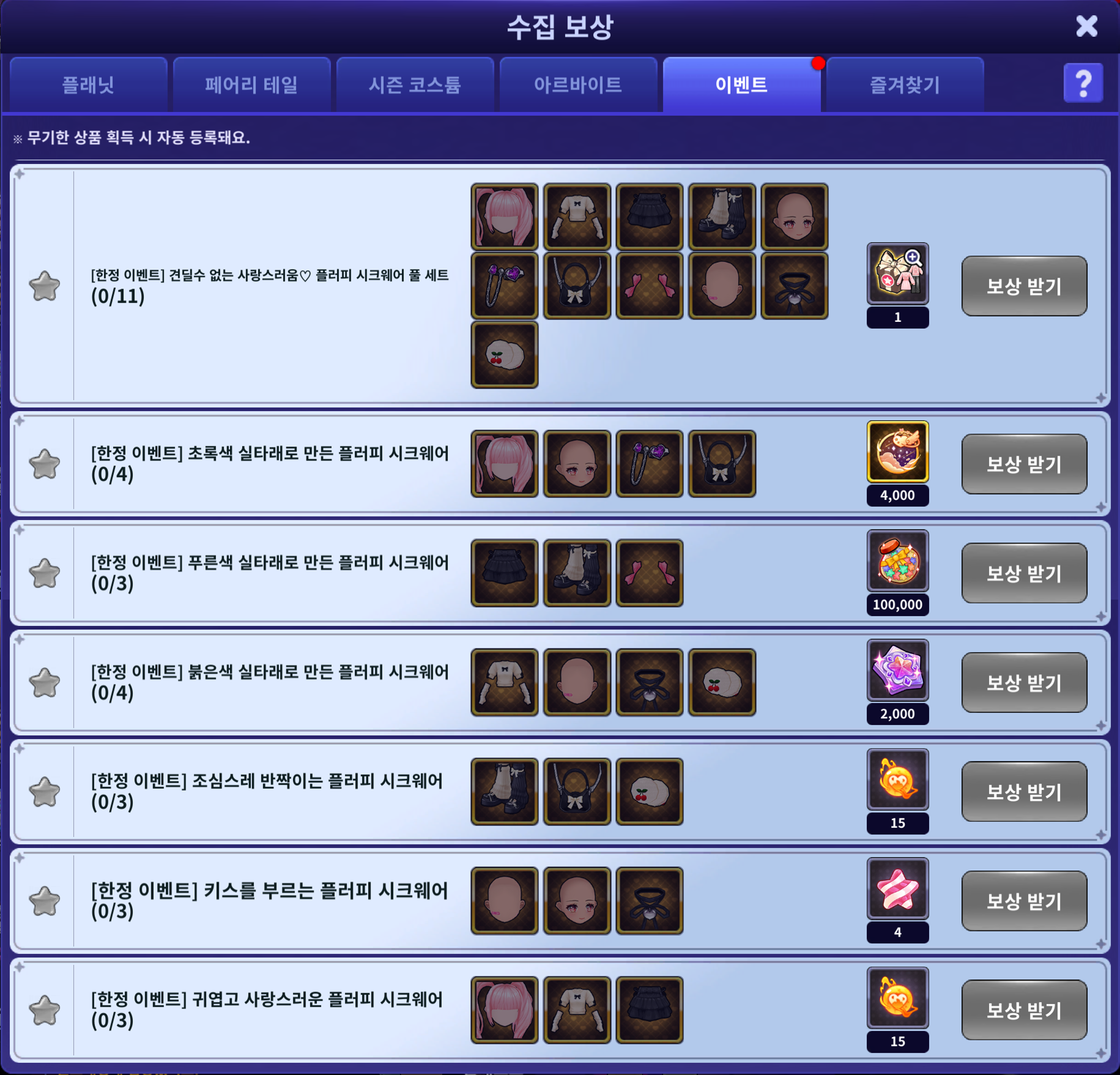 ⭐수집 보상 목록