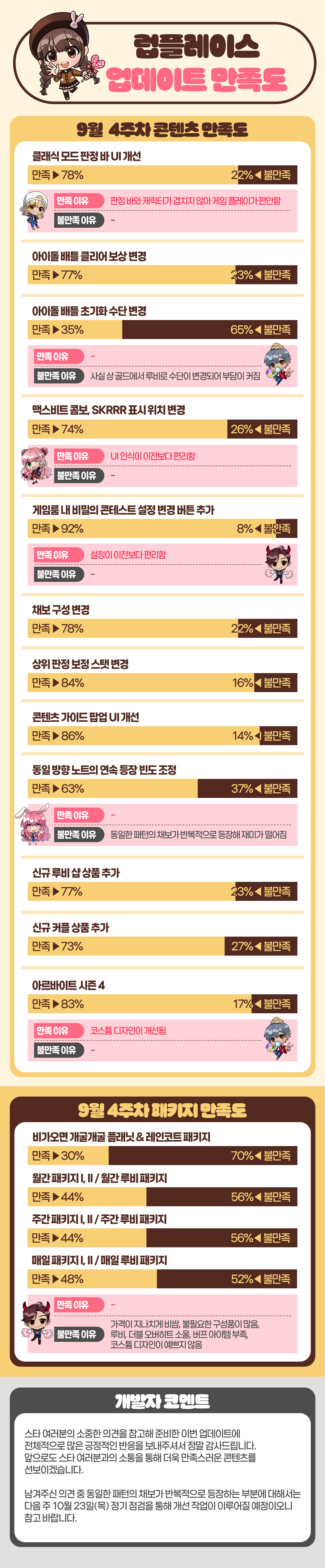 스타 님께서 귀중한 시간을 내어 남겨주신 의견을 수렴하여