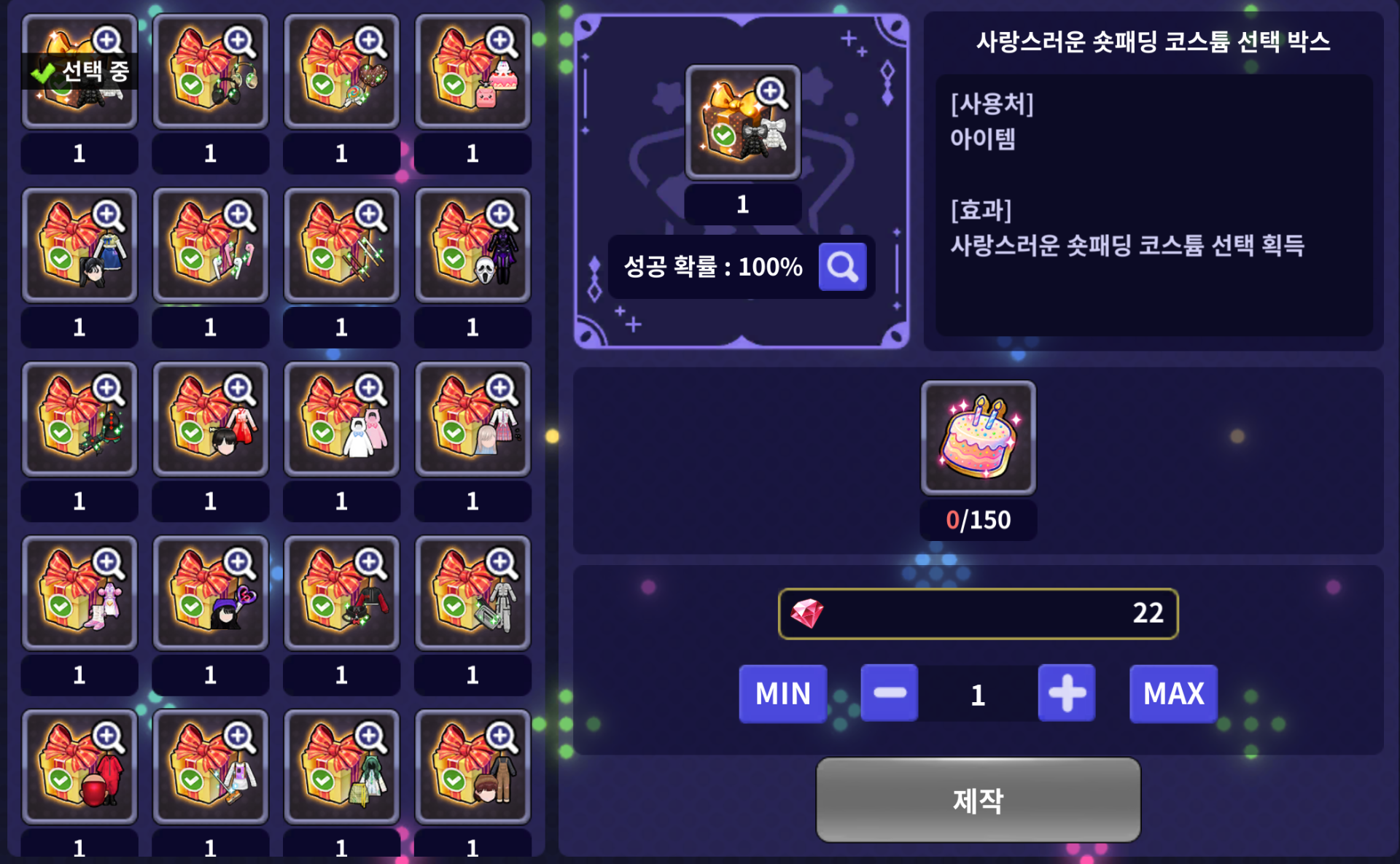 | 사랑스러운 숏패딩 코스튬 선택 박스 | 럽플레이스 두 살 축하해! 코인 150개 22 루비 | 100% |