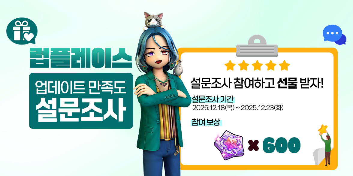 럽플레이스 업데이트 만족도 설문조사 이벤트 안내 (25년 12월 2주차) LUVPLACE