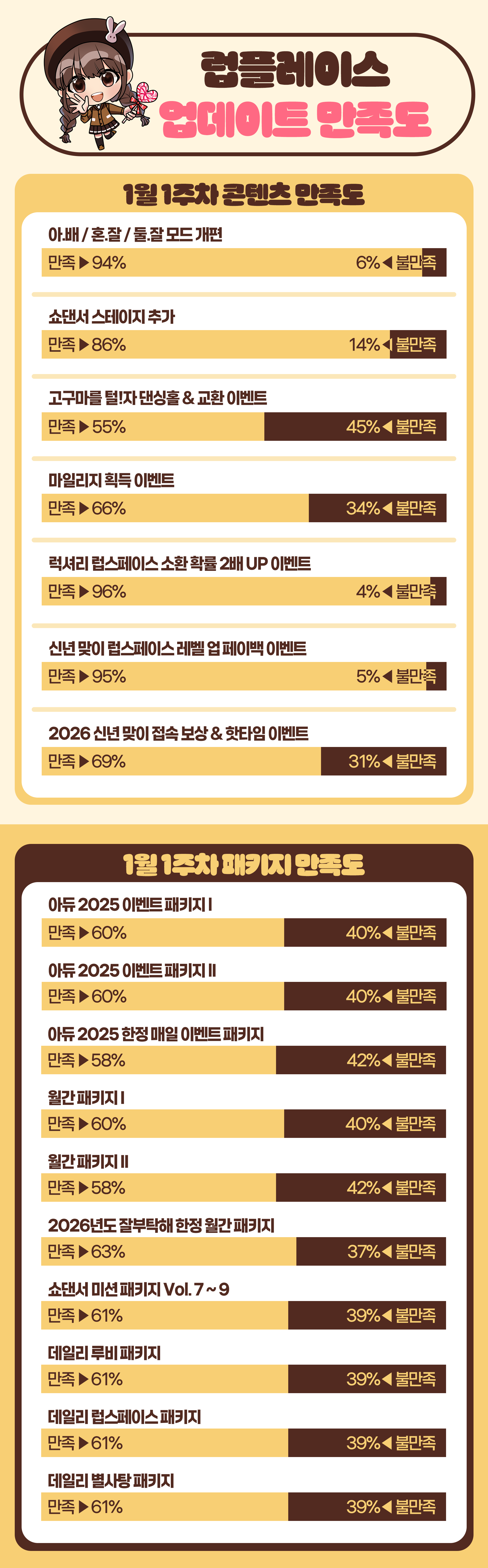 26년 1월 1주차 럽플레이스 업데이트 만족도 설문조사 결과 발표 LUVPLACE