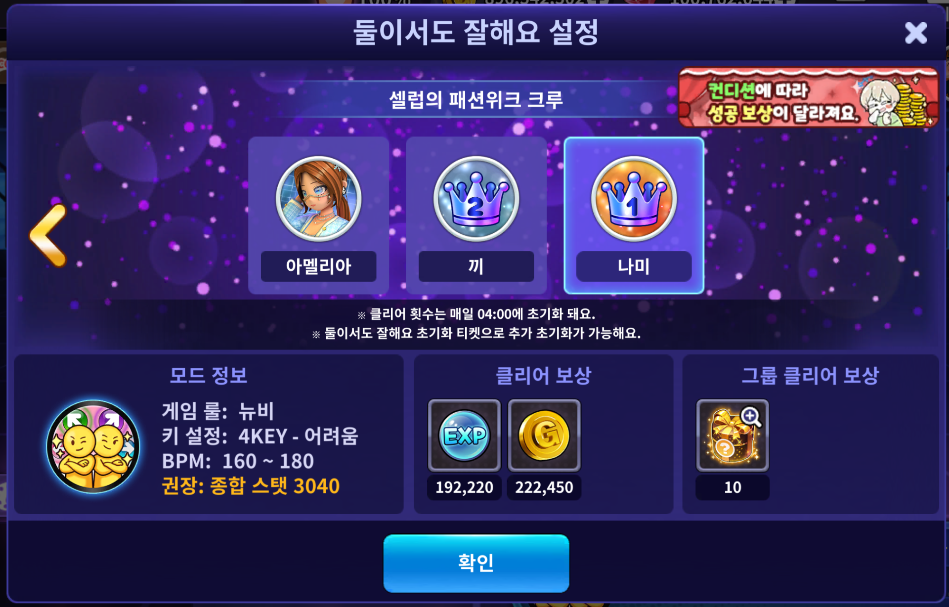 | 클리어 EXP 보상 | 클리어 EXP 보상 | ||