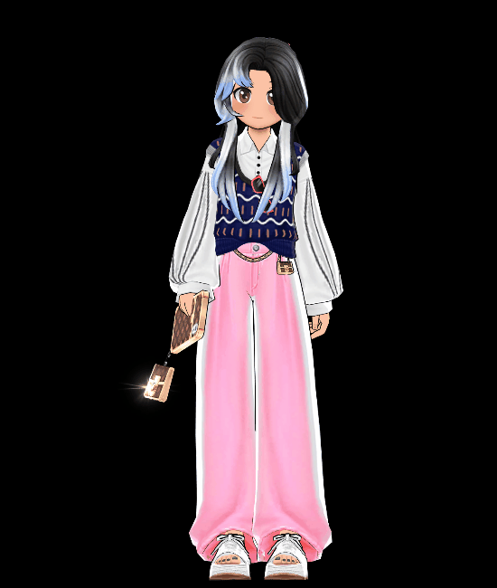 레트로풍 미니백 참 포인트 와이드 팬츠 베이비 핑크