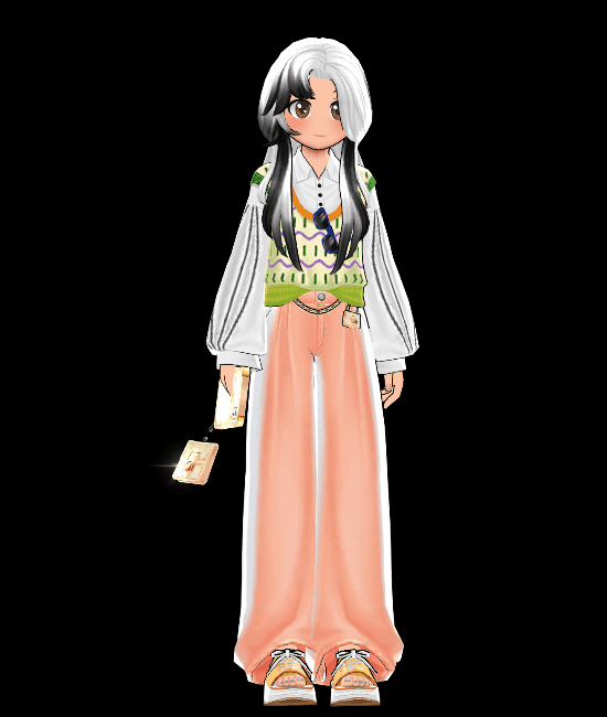 레트로풍 미니백 참 포인트 와이드 팬츠 피치레트로풍 미니백 참 포인트 와이드 팬츠 피치