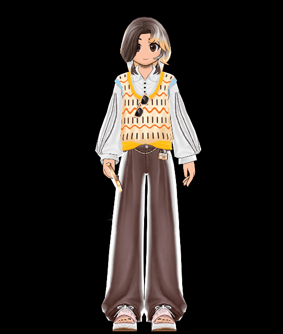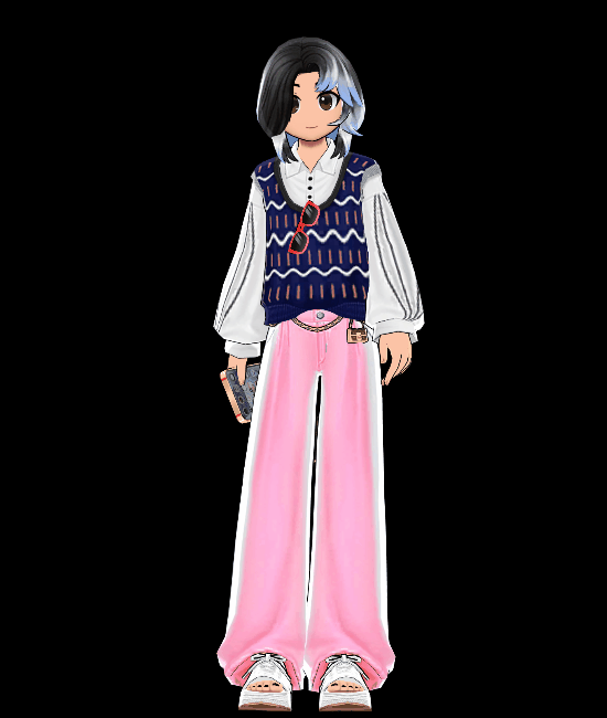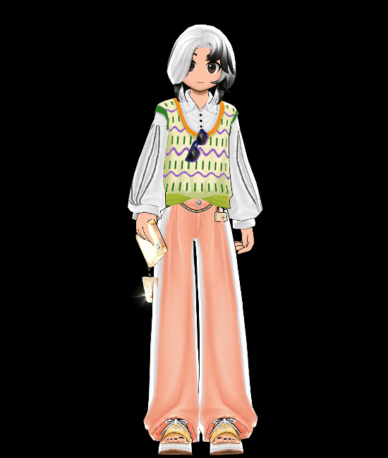 레트로풍 키치 패턴 스웨터와 벌룬 셔츠 패션레트로풍 키치 패턴 스웨터와 벌룬 셔츠 패션