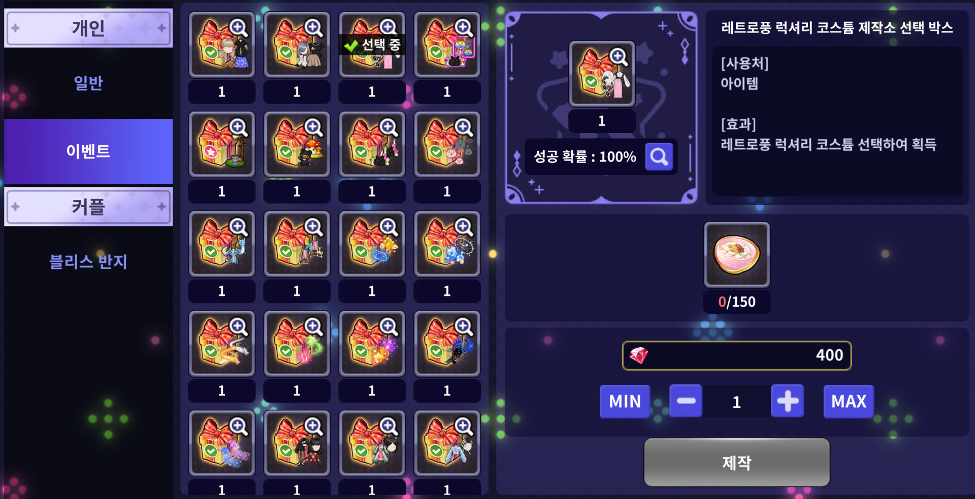 ※ 상기 이벤트 보상의 제작 확률은 모두 100% 입니다.