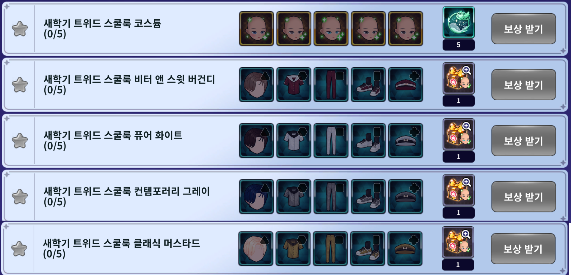 | 7일차 | 새학기 트위드 스쿨룩 코스튬 연속 출석 선택 박스 |