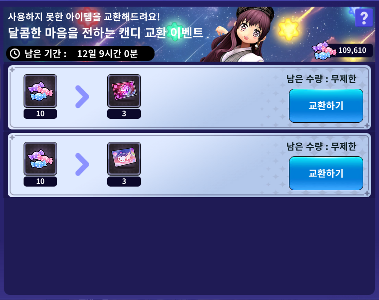 | 별사탕 루비 상자 티켓 3개 | 달콤한 마음을 전하는 캔디 10개 | 무제한 |