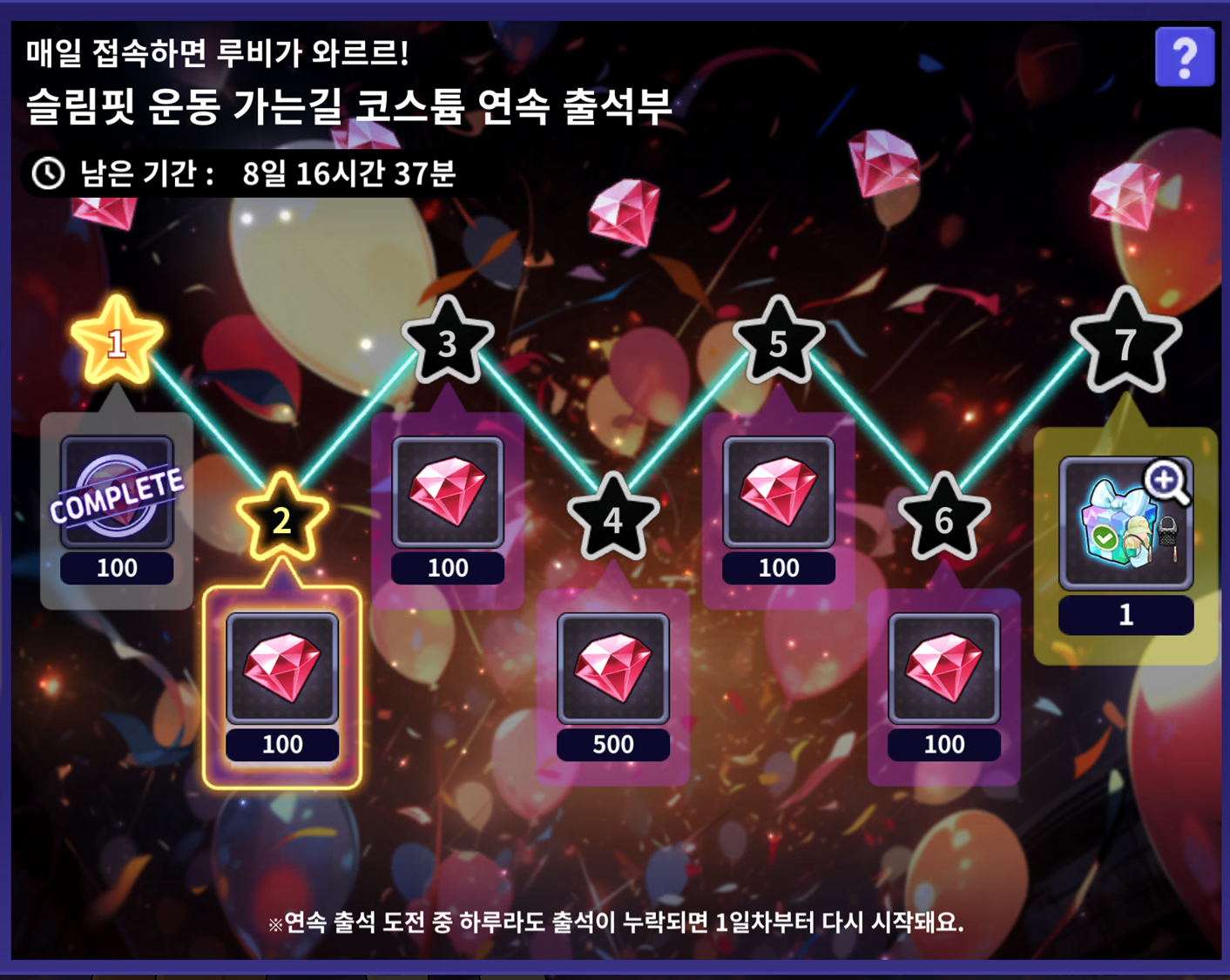 - 연속으로 출석 시 다음 출석 보상을 받을 수 있습니다.