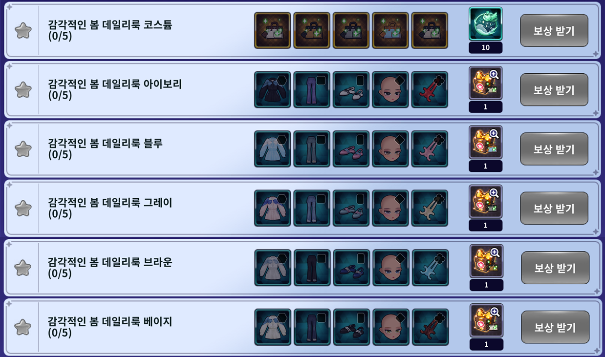 | 감각적인 봄 데일리룩 코스튬 연속 출석 선택 박스 | |