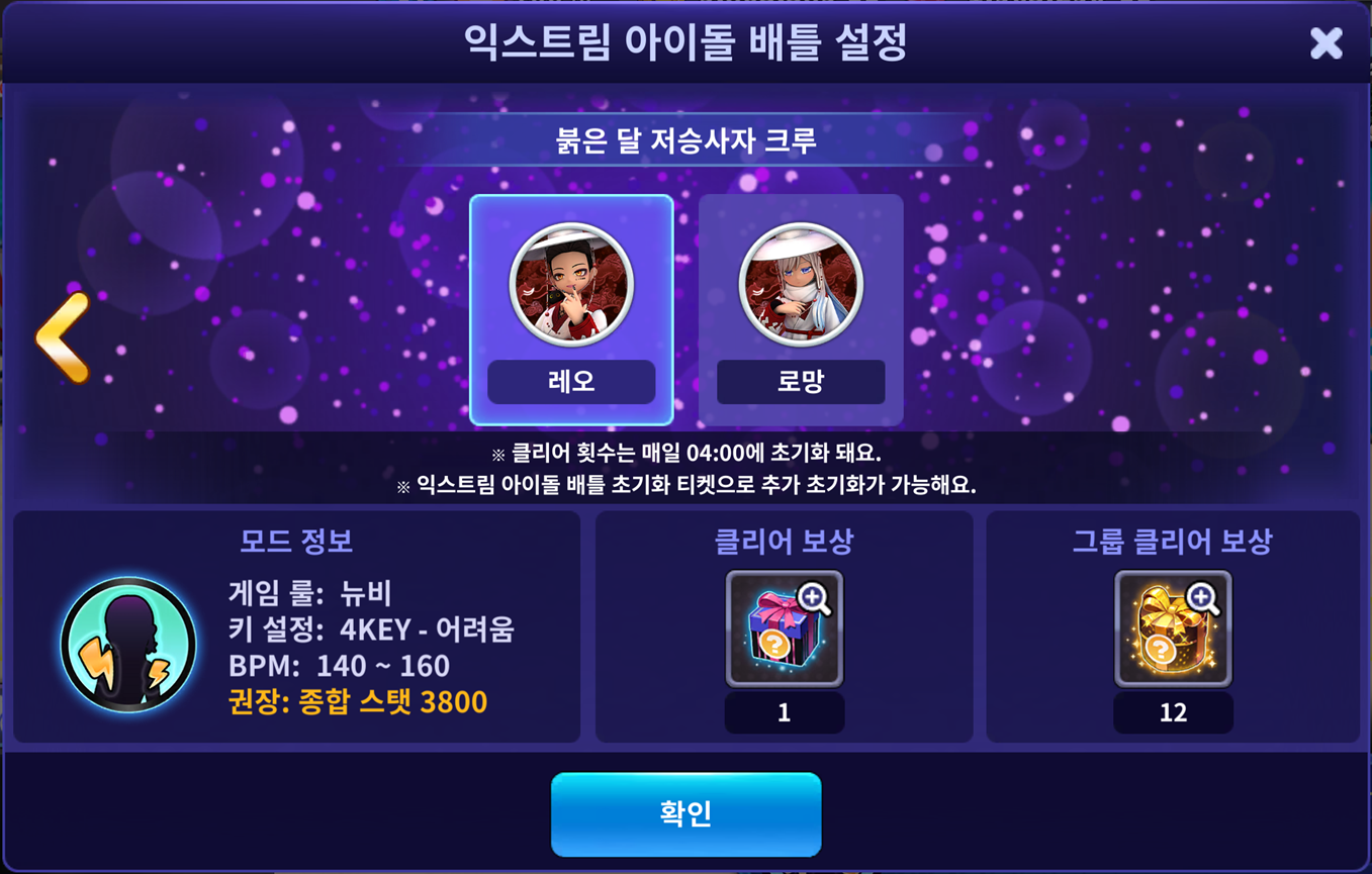 - 이벤트 기간 동안, 댄싱홀 익스트림 아이돌 배틀 모드에서 [붉은 달 저승사자 크루] NPC 클리어 시 경험치 획득량이 기존 대비 4배로 증가됩니다.
