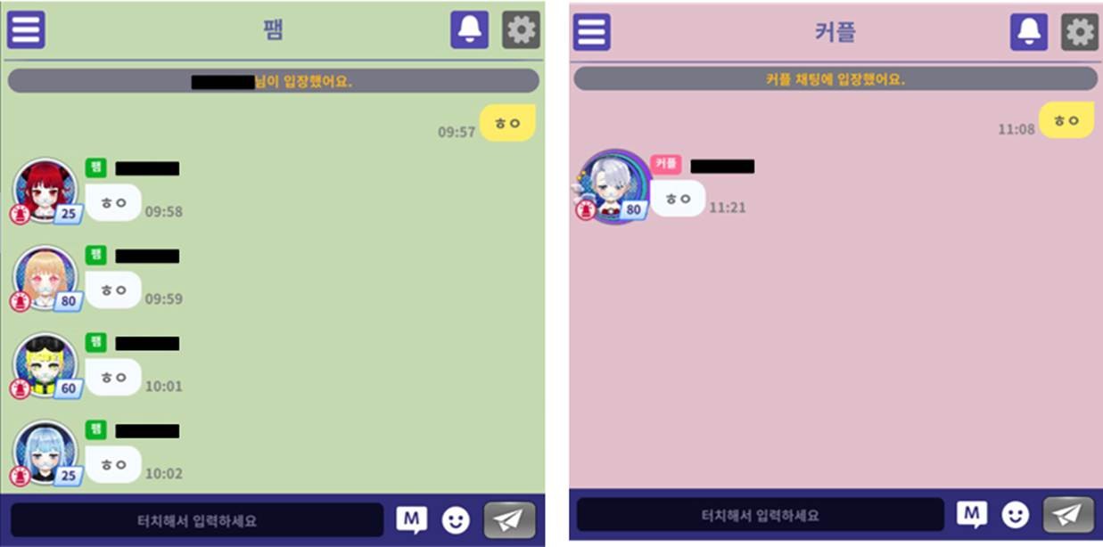 Q. 커플, 팸 채팅은 색상 구분을 해주세요.