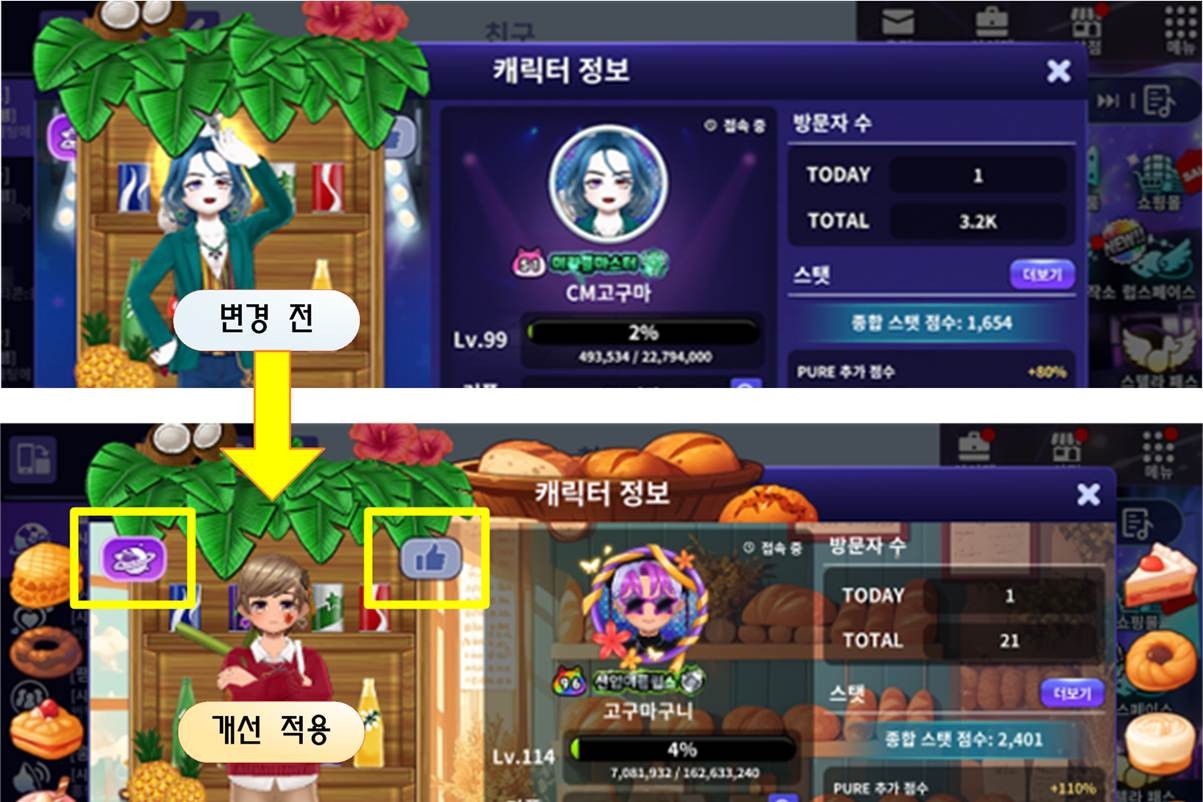 Q. 캐릭터 정보 팝업 볼 때 플래닛이 너무 크면 팔로우 버튼이 가려져 보기 힘들어요.