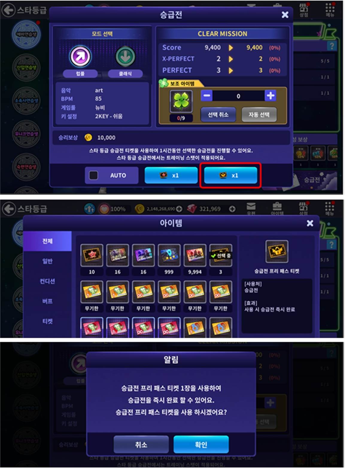 2) 승급전 프리 패스 티켓을 사용하면 승급전을 진행하지 않고 승급이 즉시 완료됩니다.