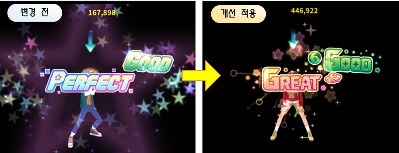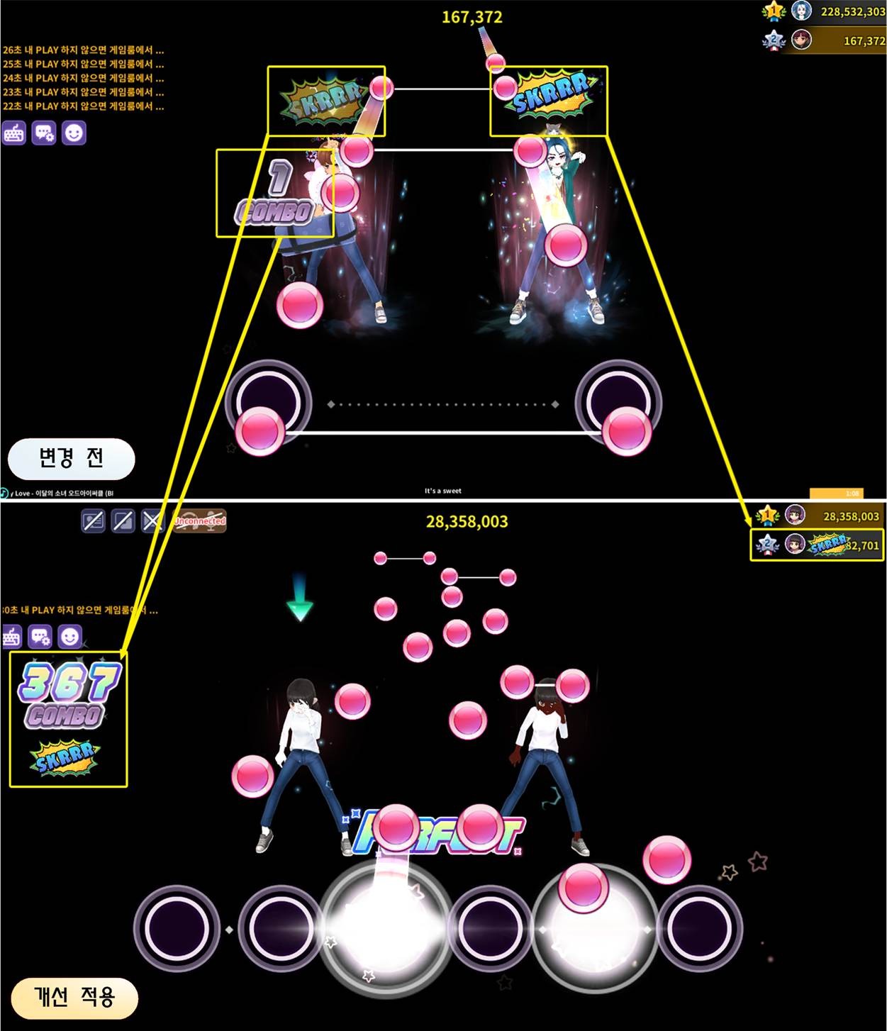 A. 클래식 판정 바가 더 잘 보여지도록 UI 가드를 추가했습니다. (클래식 커플 댄스 모드 제외)