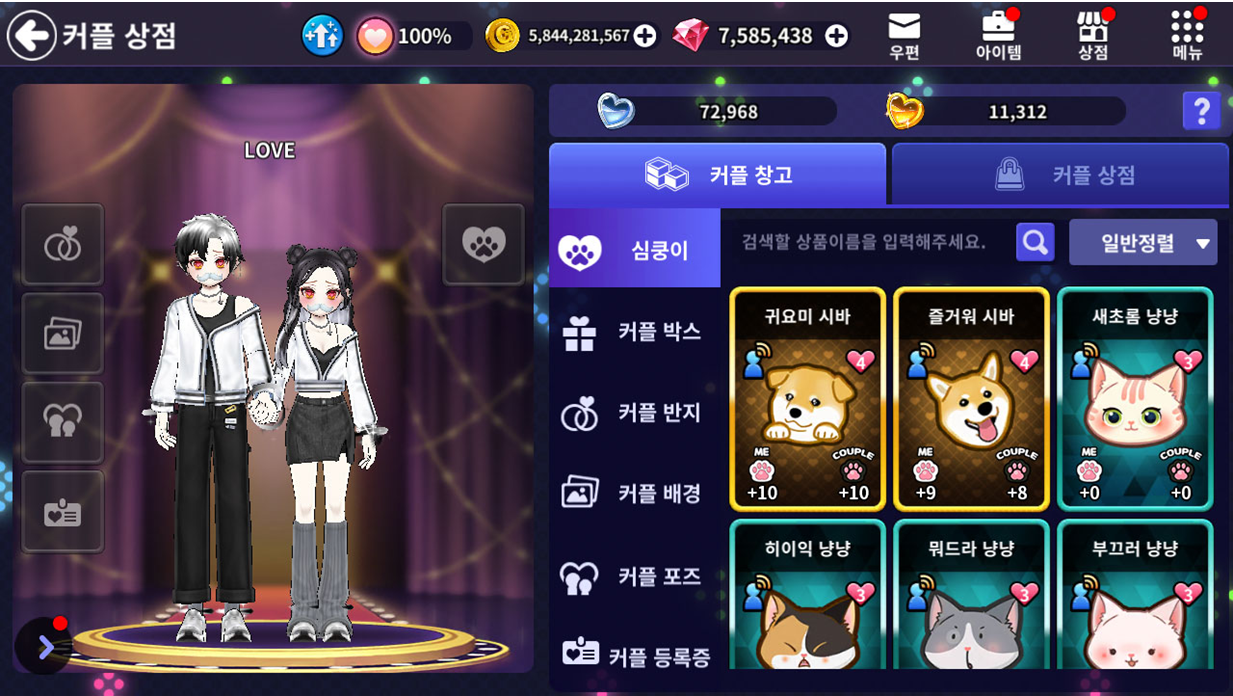 A. 1) 커플 창고에서 심쿵이 레벨 업 이후에 뒤로가기를 하면 커플 창고 탭이 유지되게 변경됩니다.