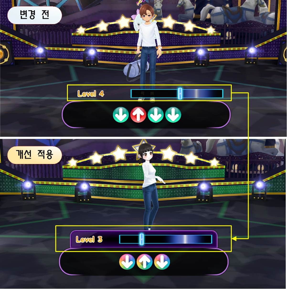 A. 쇼댄서의 지표 상 허들이 되는 스테이지의 난이도를 낮췄습니다.