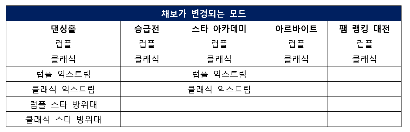 A. 위 표에 해당하는 모드에서 모든 판정을 PERFECT로 플레이했을 때, HIGHLIGHT 구간에 WOW 보너스를 획득할 수 있도록 채보 구성이 변경됩니다.