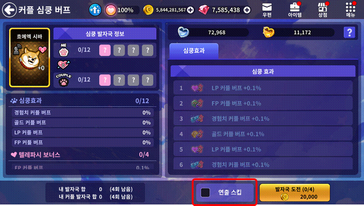 2) 심쿵이 섬네일에 스타 님과 커플 스타 님의 진행 발자국 개수를 확인할 수 있게 개선됩니다.
