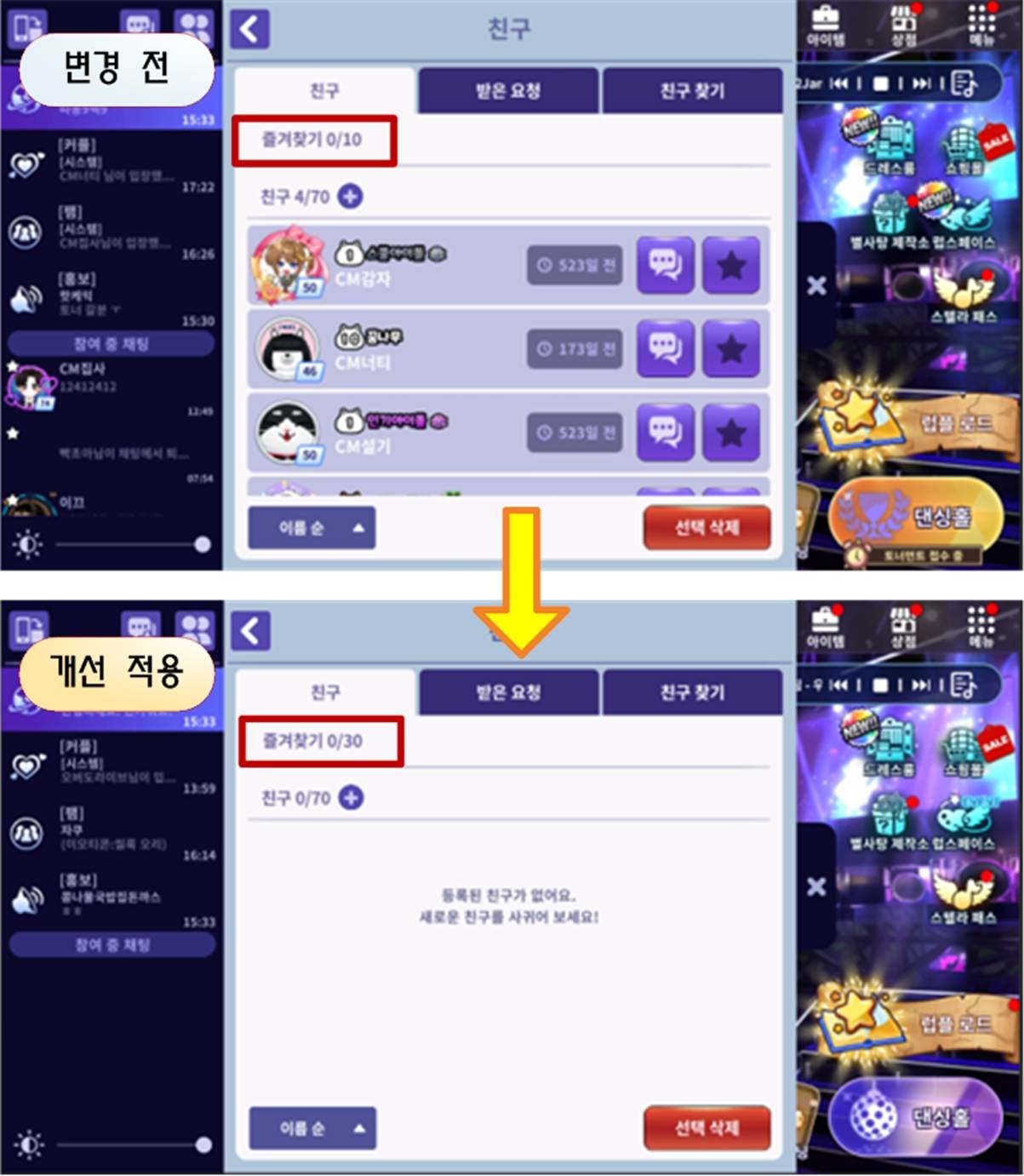Q. 친구 즐겨찾기 10명 이상으로 확장해주세요.