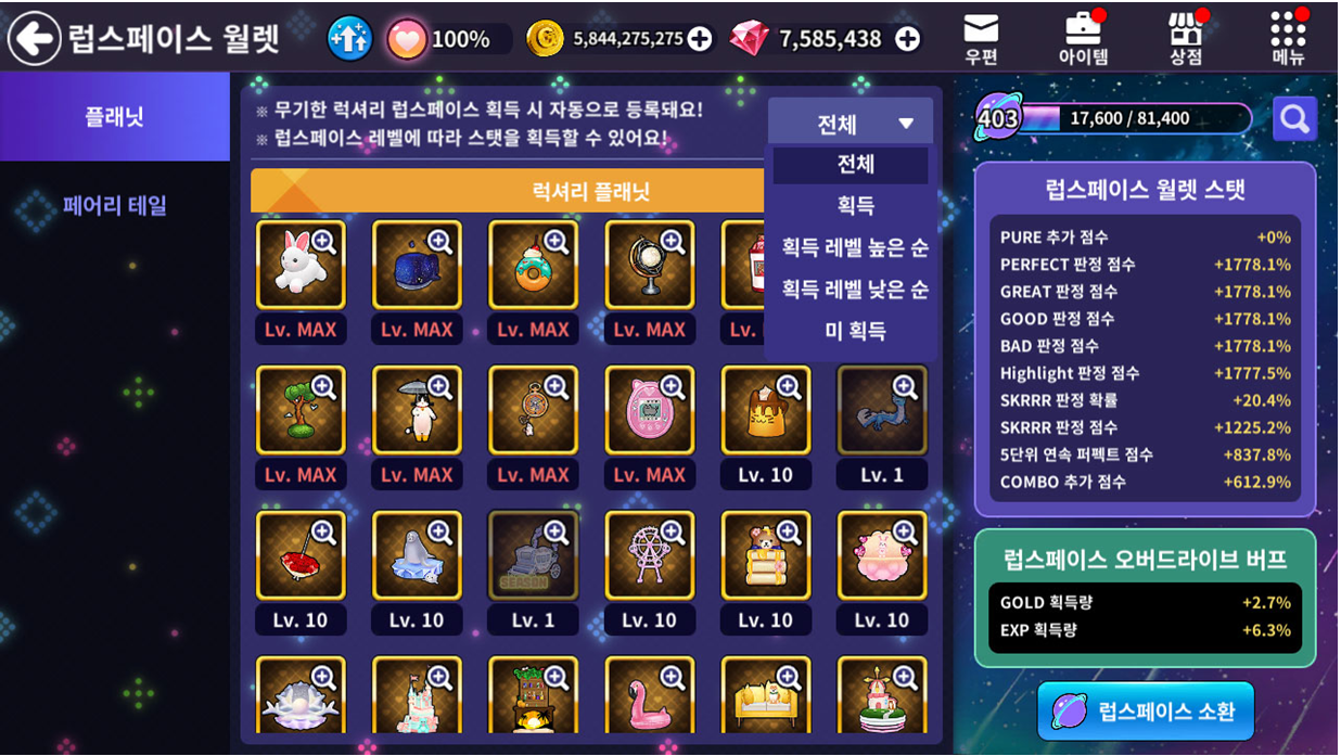 2) 월렛 상품 정렬에 '레벨 높은 순', '레벨 낮은 순' 기능이 추가 됩니다.