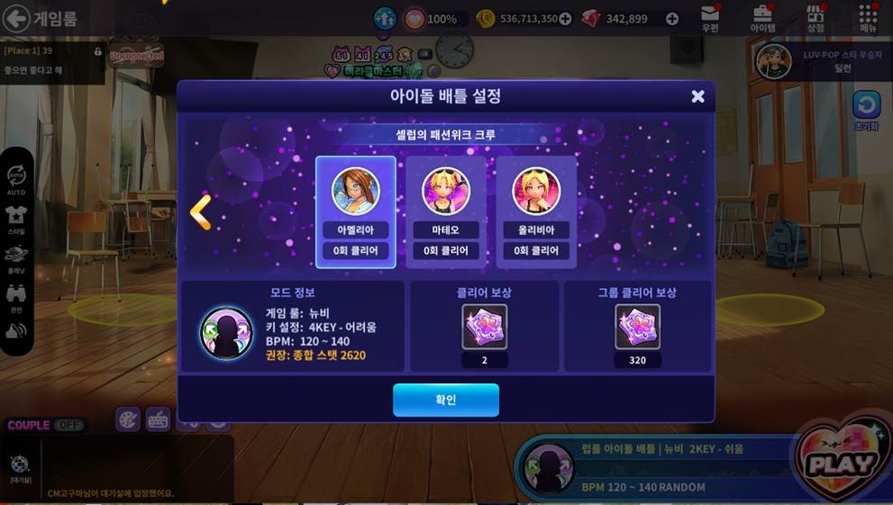 Q. 아이돌 배틀 복숭이 보스인 크루 부터 난이도 차이가 너무 크며 셀럽코인 보상도 그에 합당하지 않다.