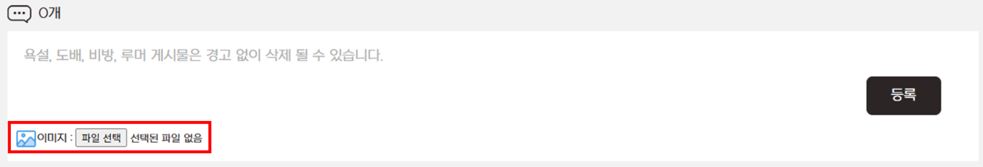 댓글 등록 시, 이미지 파일을 첨부하여 등록하면 댓글 텍스트 하단에 이미지가 표시됩니다.
