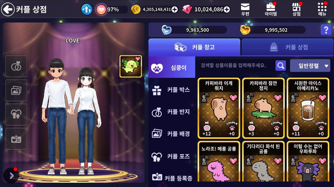 📌커플 심쿵 버프 화면에서 커플 심쿵이 슬롯을 터치 시, 커플 창고 내 해당 커플 심쿵이를 즉시 표시되도록 변경됩니다.