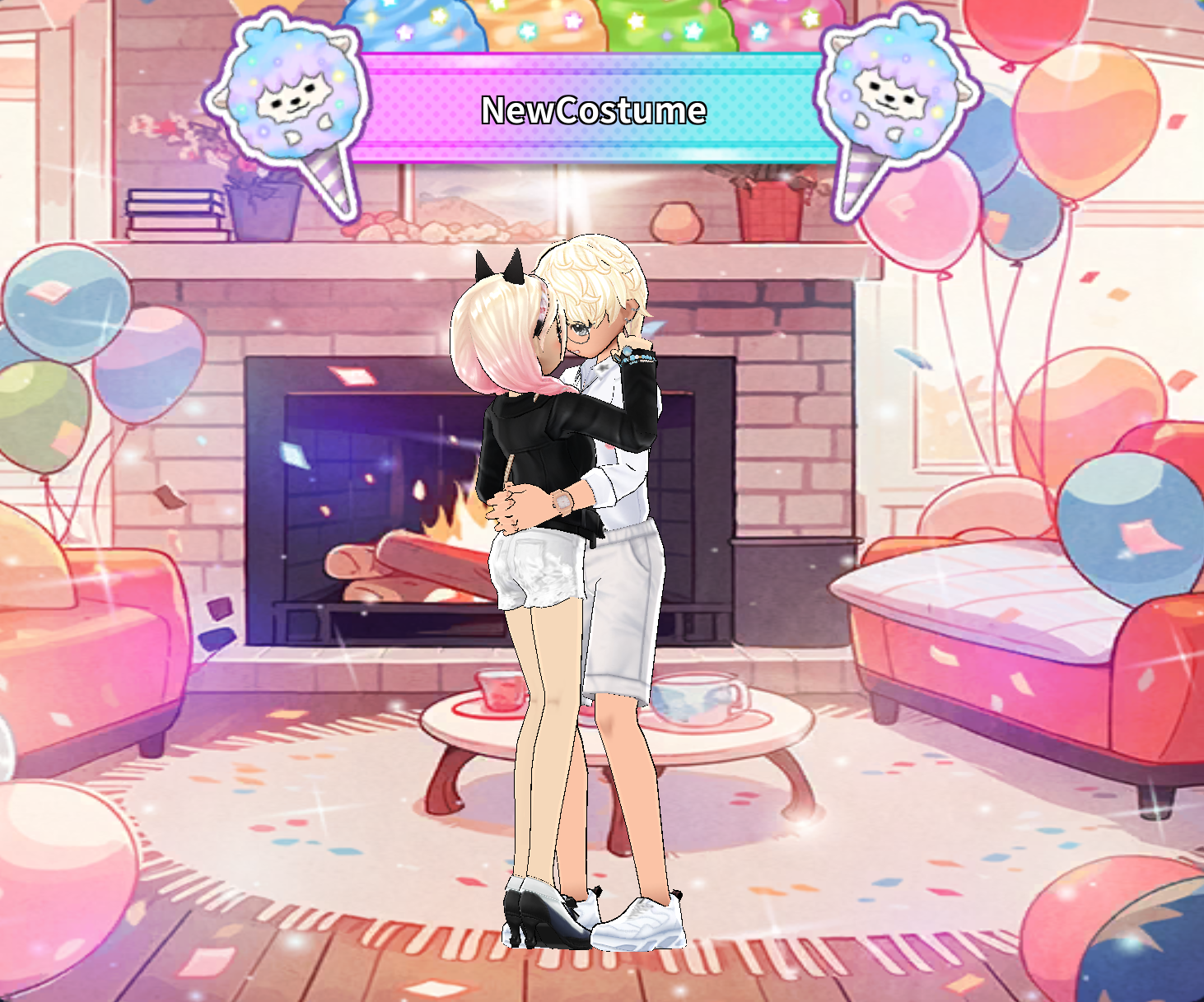 | 신규 커플 배경: 포근한 축하파티 | 신규 커플 포즈: 수줍은 손 키스 포즈 |