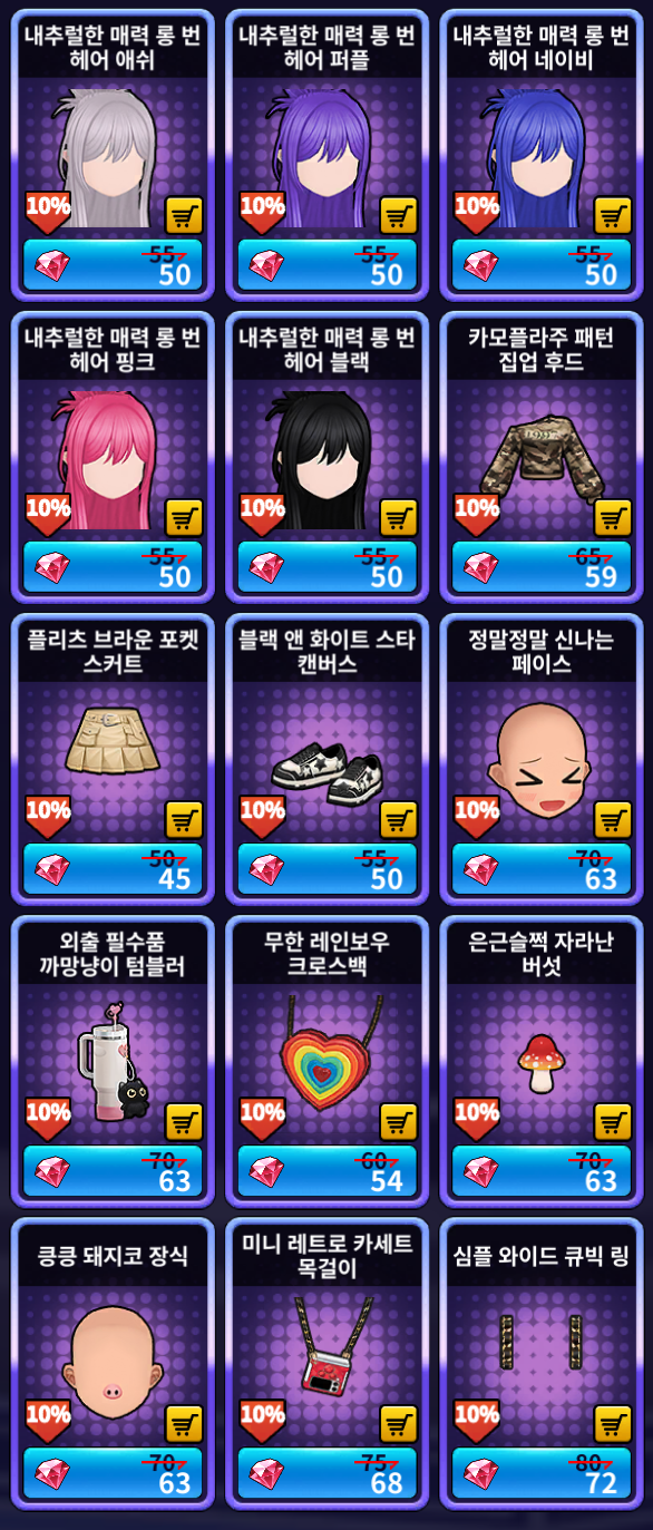 [루비 샵] 추가 상품 (여성)