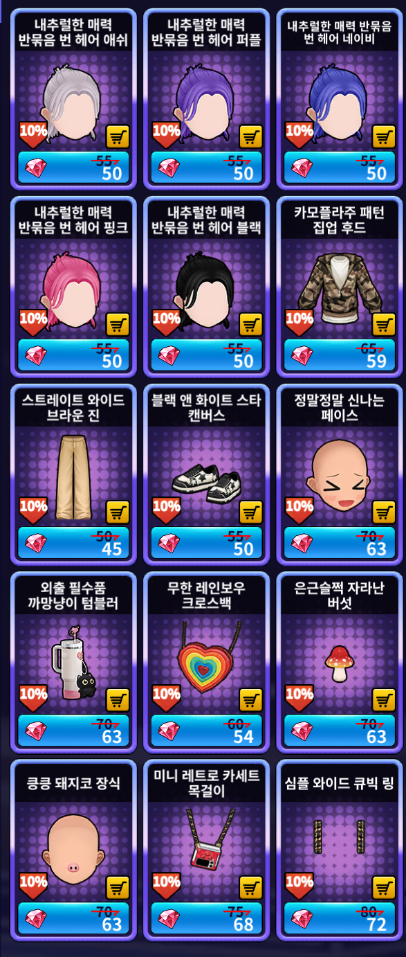 [루비 샵] 추가 상품 (남성)