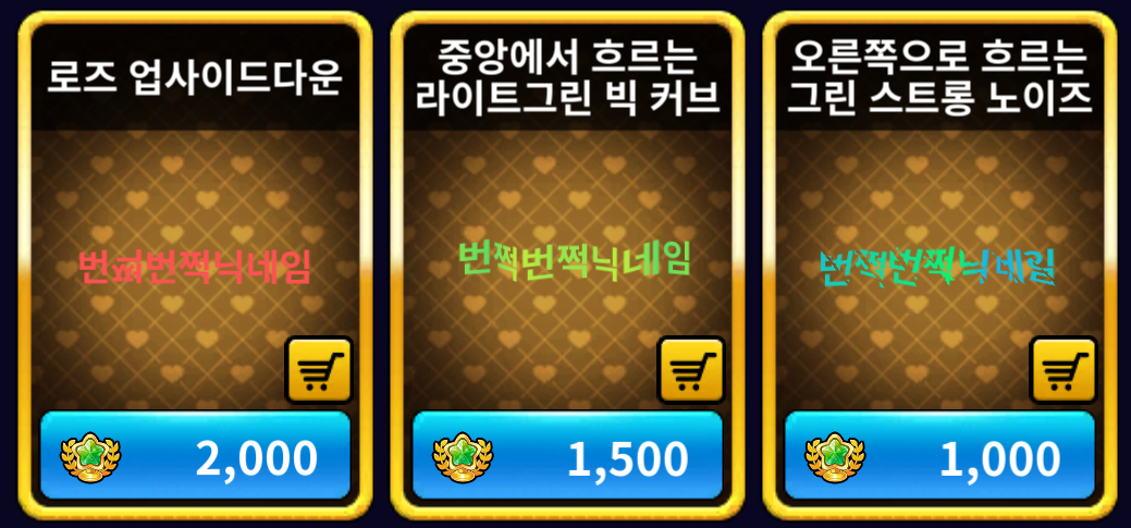 | 신규 트로피 샵 닉네임 꾸미기 아이템 착용 미리보기 |