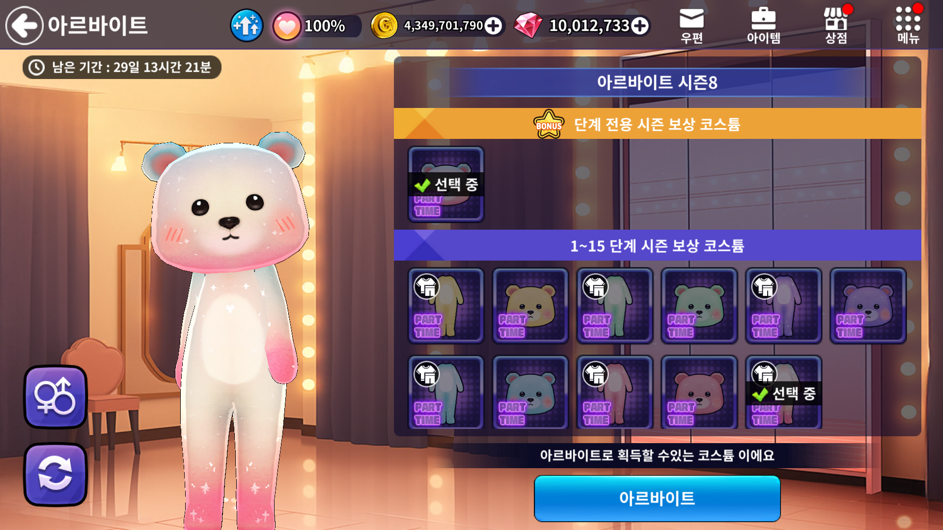📌아르바이트 BONUS 및 1~15 단계 시즌 보상 코스튬이 변경됩니다.