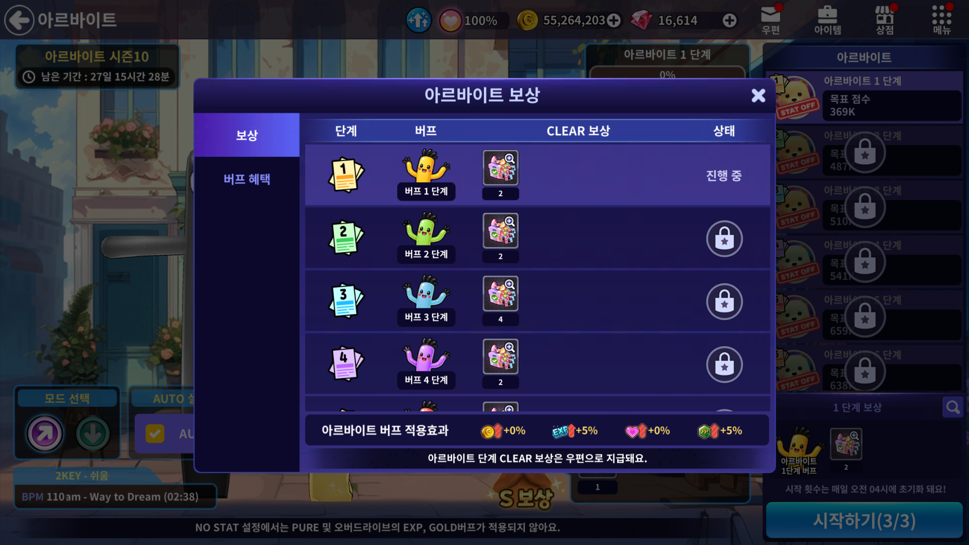 📌아르바이트 단계 별 클리어 보상이 기존 [별사탕 루비 상자 티켓]에서 [올인원 초기화 티켓 선택 박스]로 변경됩니다. (추가)