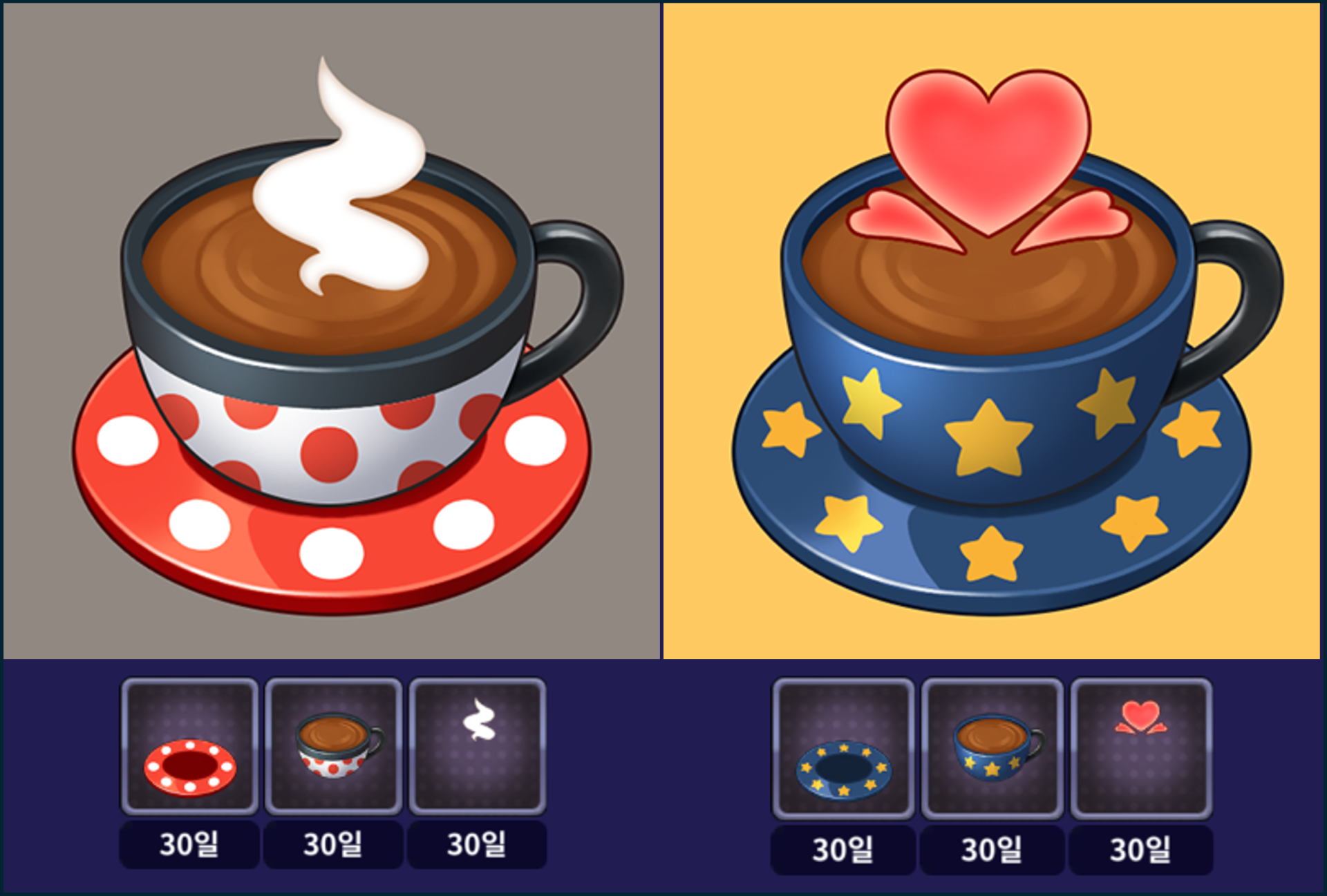 | 신규 팸 마크 - 모락모락 헤이즐넛 라떼 / 하트퐁당 다크홀릭 라떼 |