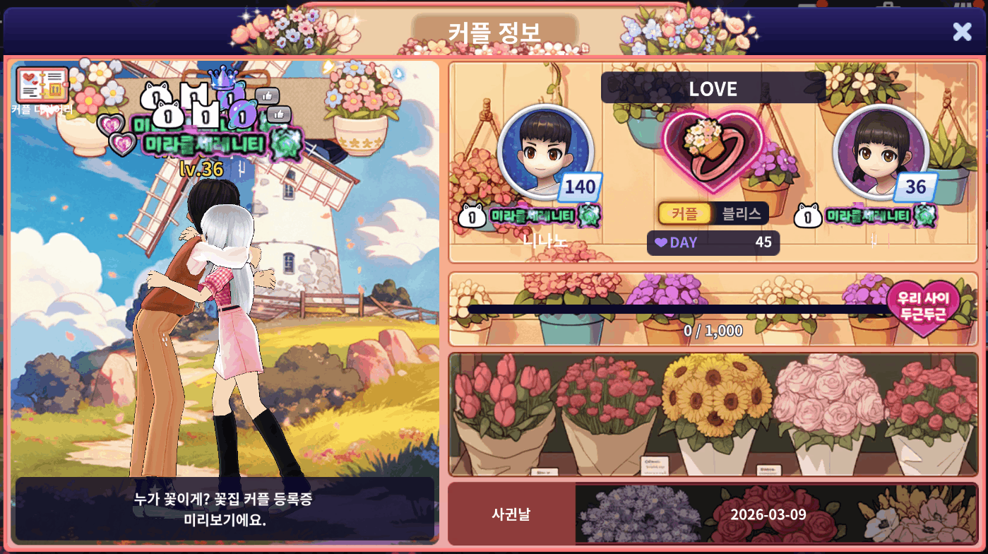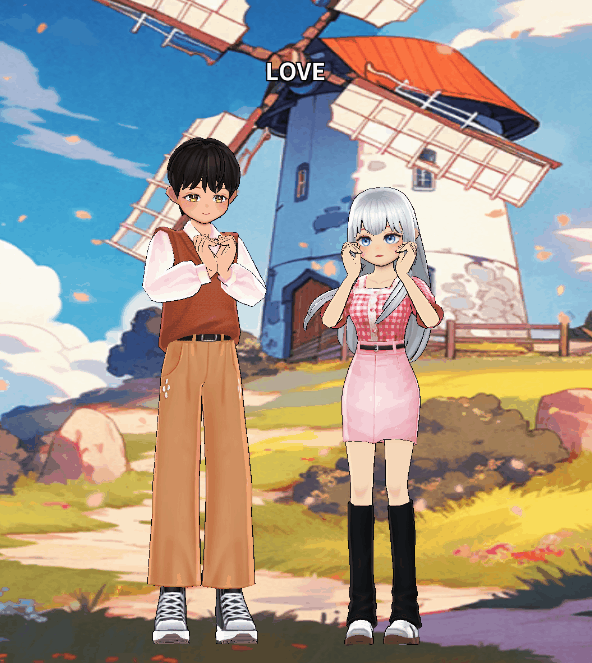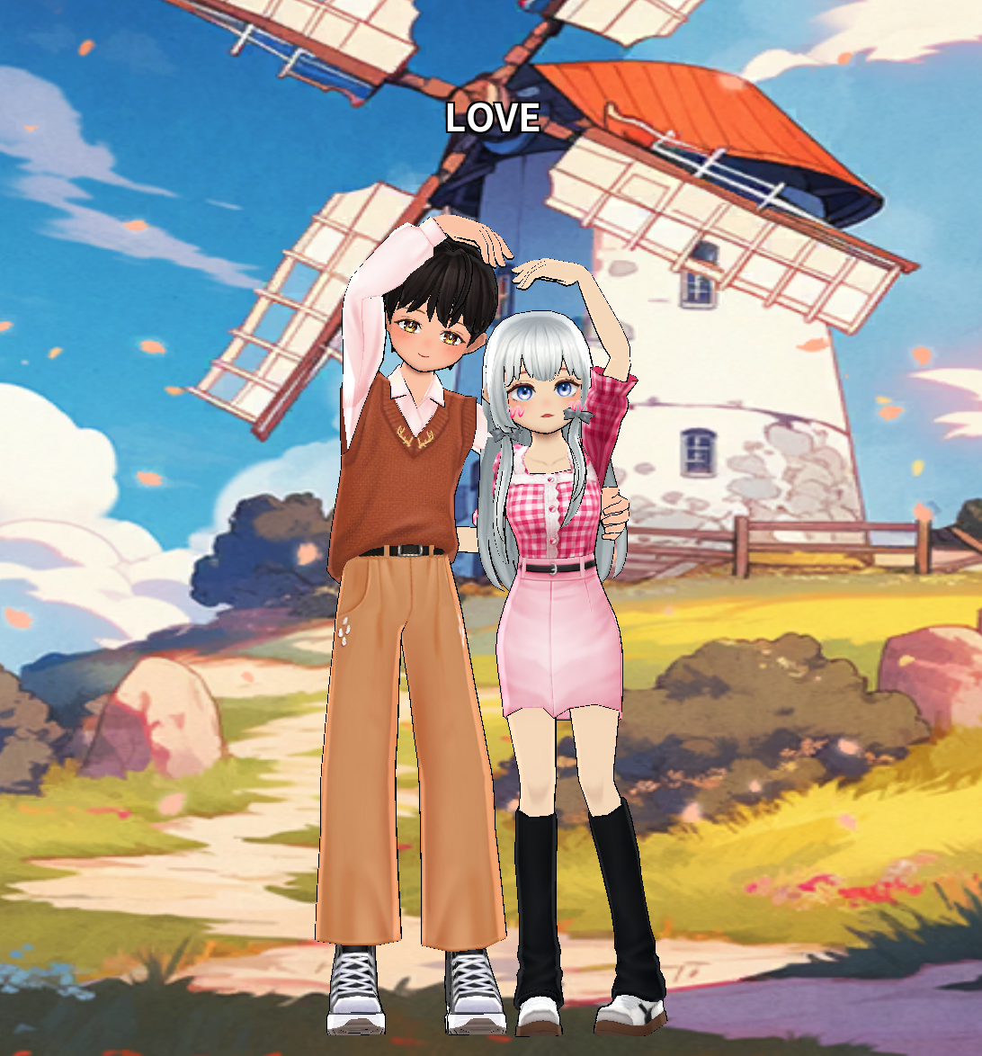 | 신규 커플 배경: 평화로운 풍차 | 신규 커플 포즈: 너에게만 보내는 하트 포즈 |