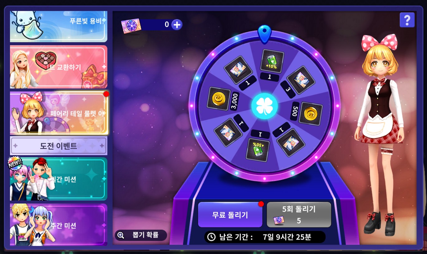 룰렛을 돌려 다양한 보상을 획득할 수 있습니다.